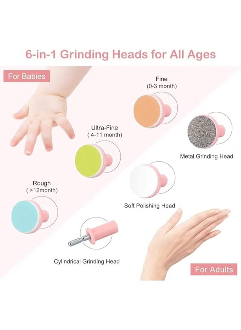 Multiple Grinding Heads: The kit includes several cushioned pads with varying textures and coarseness, suitable for different stages of your baby's growth, from newborns to toddlers. It also includes pads for adult use.
