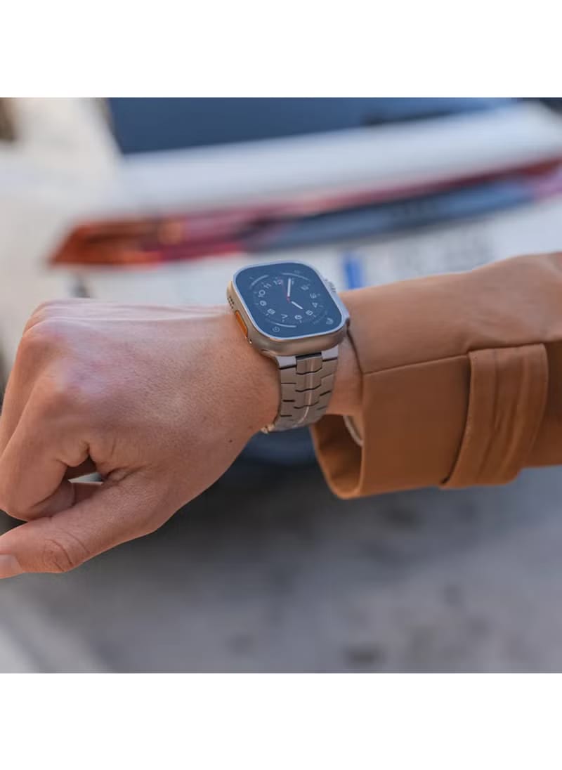 Sporty and Secure Strap: The ocean band design includes multiple holes for breathability and offers a secure fit for active users. The metal loops connecting the strap to the case enhance the watch's rugged aesthetic.
